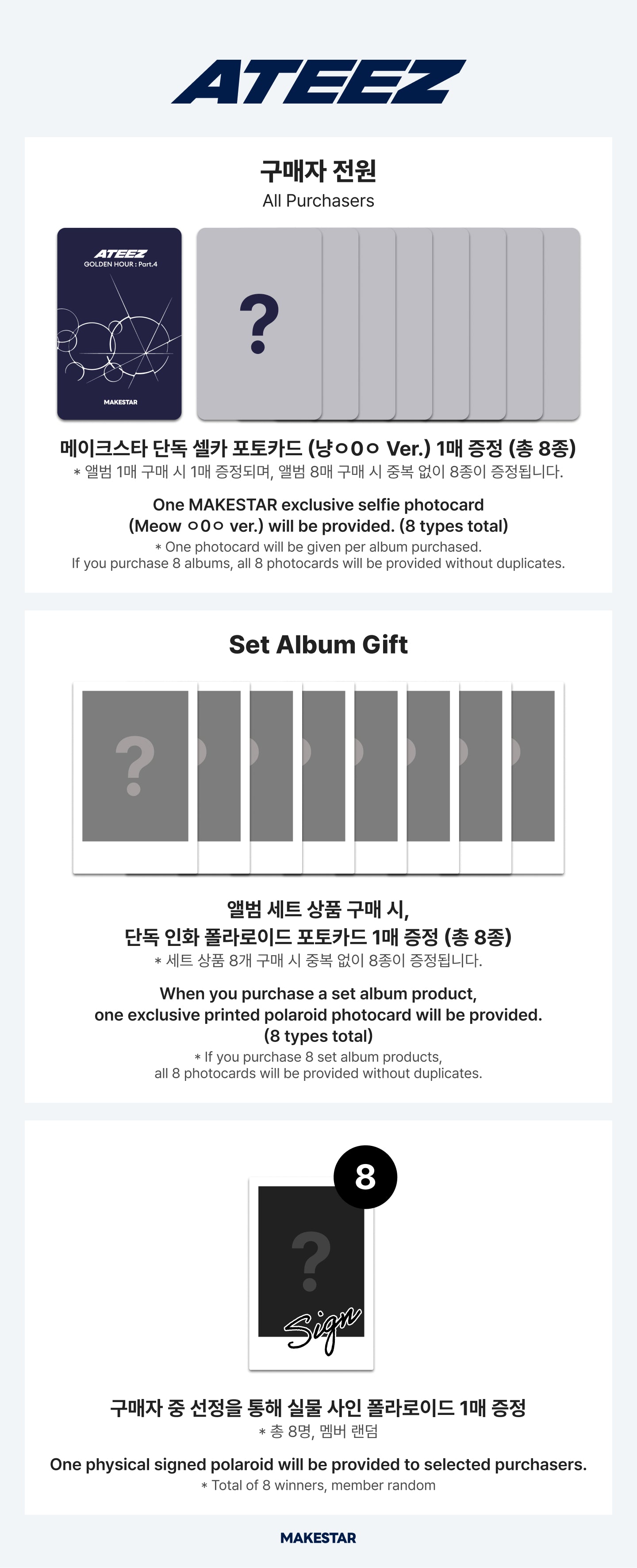 MakeStar : 1 Exclusive Selfie Photocard (β€œMeow γ…‡0ㅇ” Ver.) / Random 1 out of 8