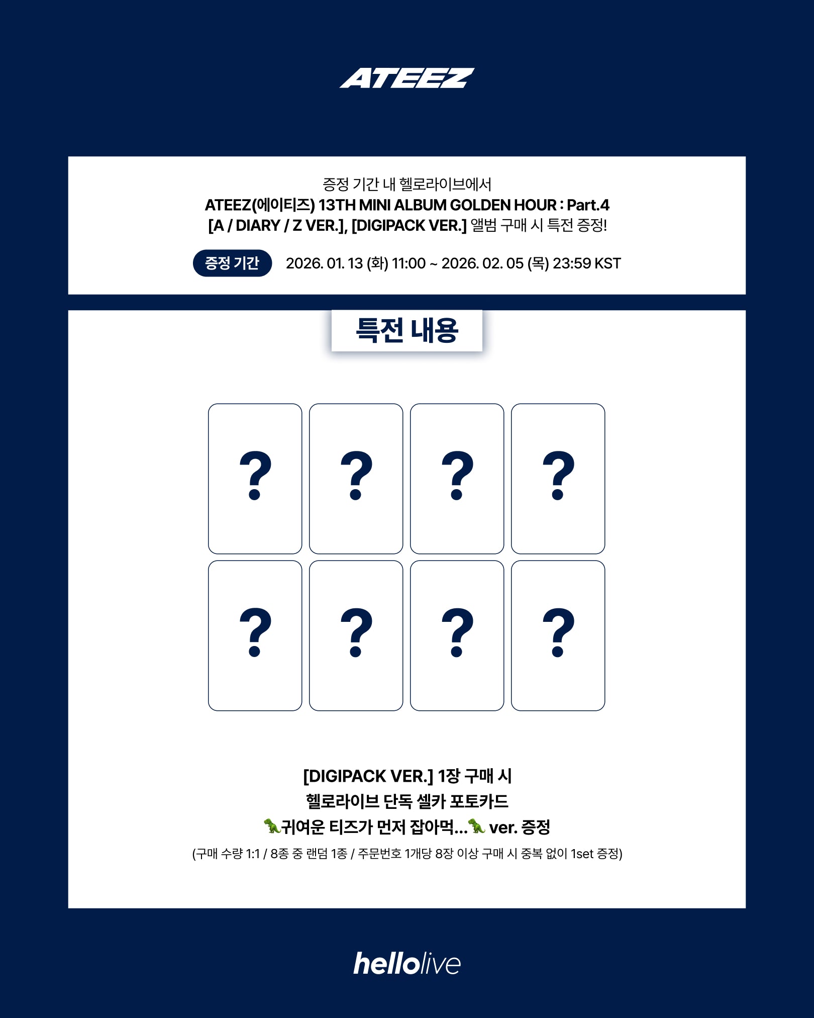 [POB] ATEEZ - 13th Mini Album : GOLDEN HOUR : Part.4 (DIGIPACK Ver)